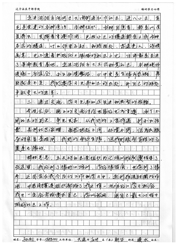大连市庄河区新华街道暖水社区孙刚书记培训心得