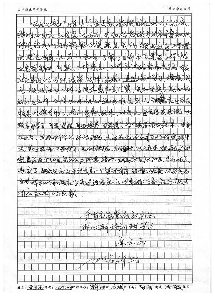 朝阳市龙城区向阳街道北联社区党总支书记宗立民学习心得
