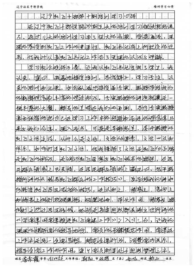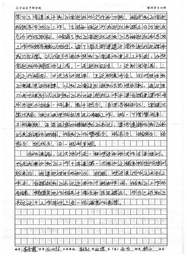 朝阳市双塔区红旗街道蓬莱社区书记李明艳培训学习心得