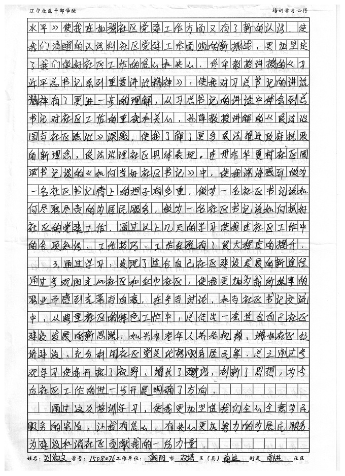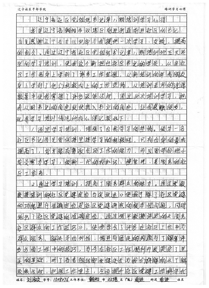 朝阳市双塔区前进街道前进社区书记刘淑文培训学习心得