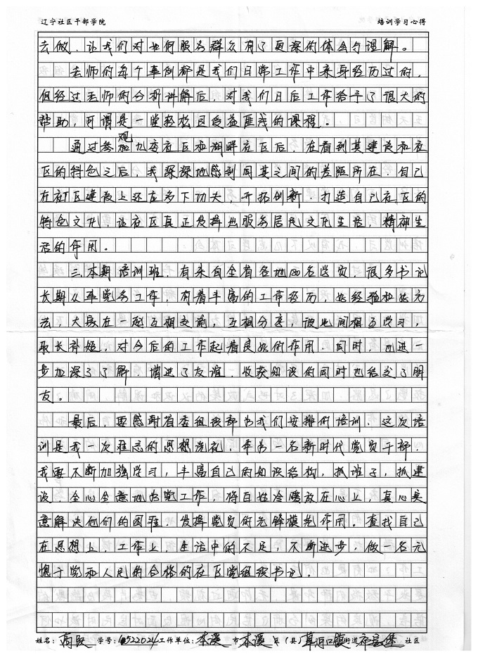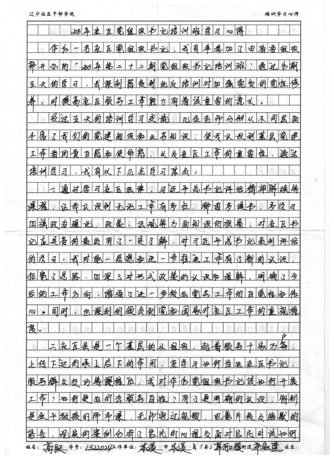 本溪市本溪县草河口镇祁家堡社区高跃书记培训心得