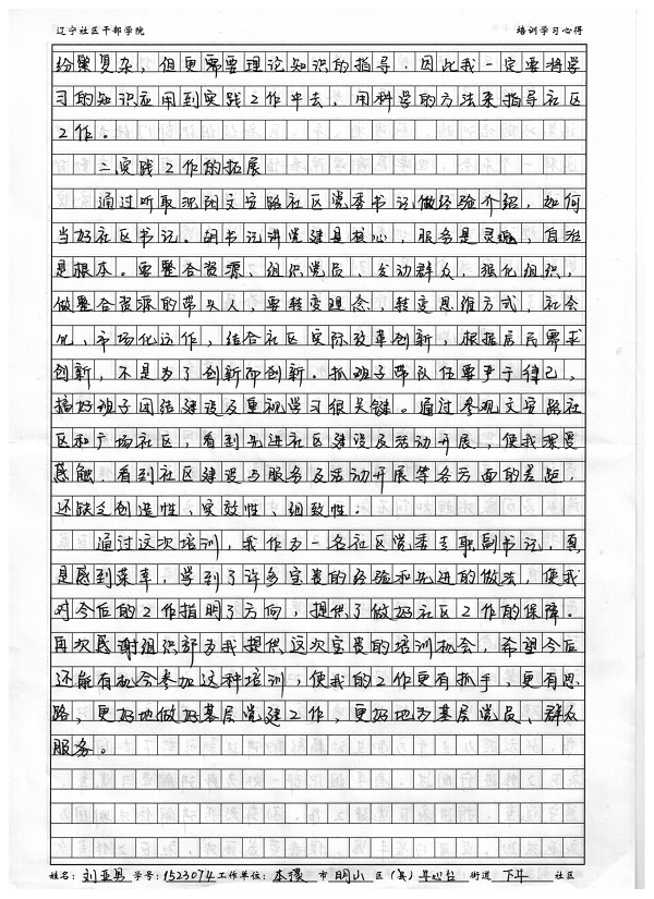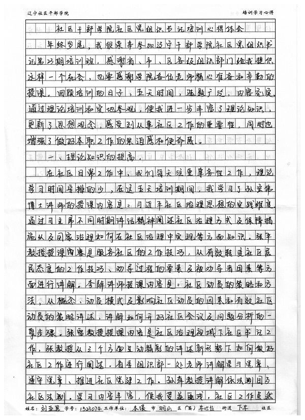 本溪市明山区牛心台街道下牛社区刘亚男书记培训心得