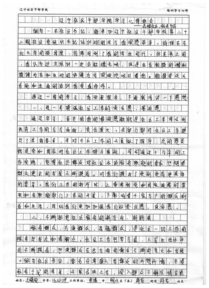 本溪市明山区卧龙街道卧龙社区王晓波书记培训心得