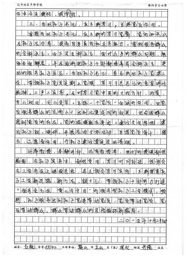鞍山市立山区深北街道兴隆社区书记赵艳培训学习心得