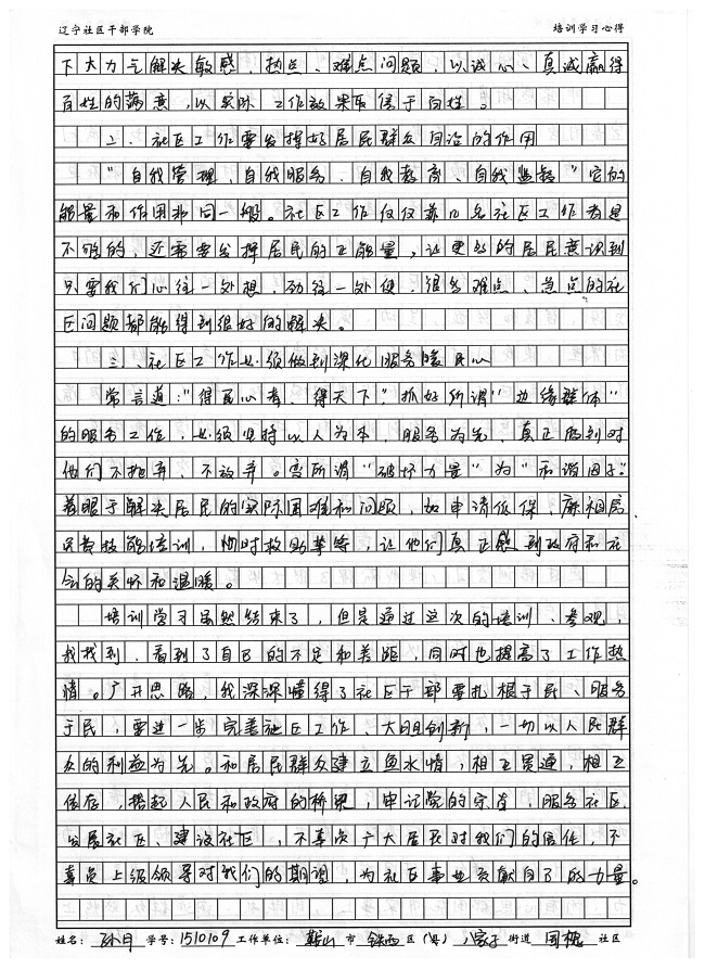 鞍山市铁西区八家子街道国槐社区孙月培训学习心得