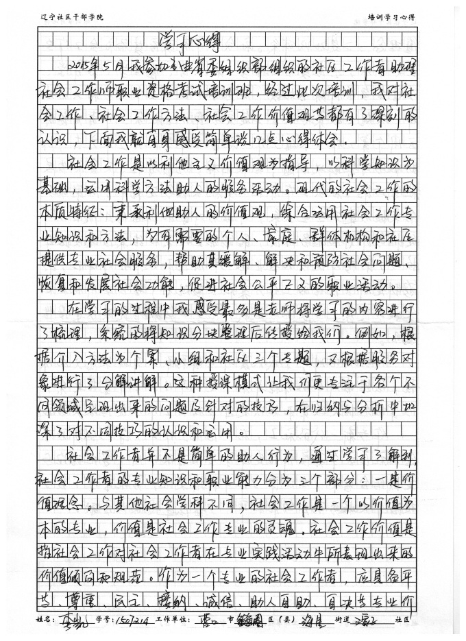 营口市鲅鱼圈区海星街道三家子社区李凯培训学习心得