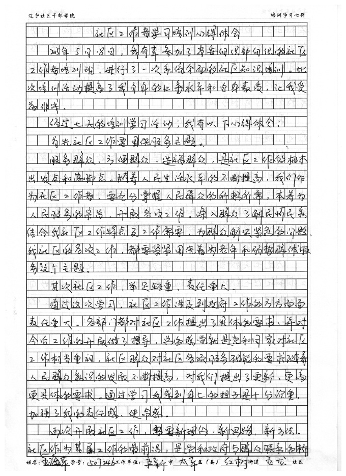 阜新市太平区红树街道御龙社区王海萍培训学习心得