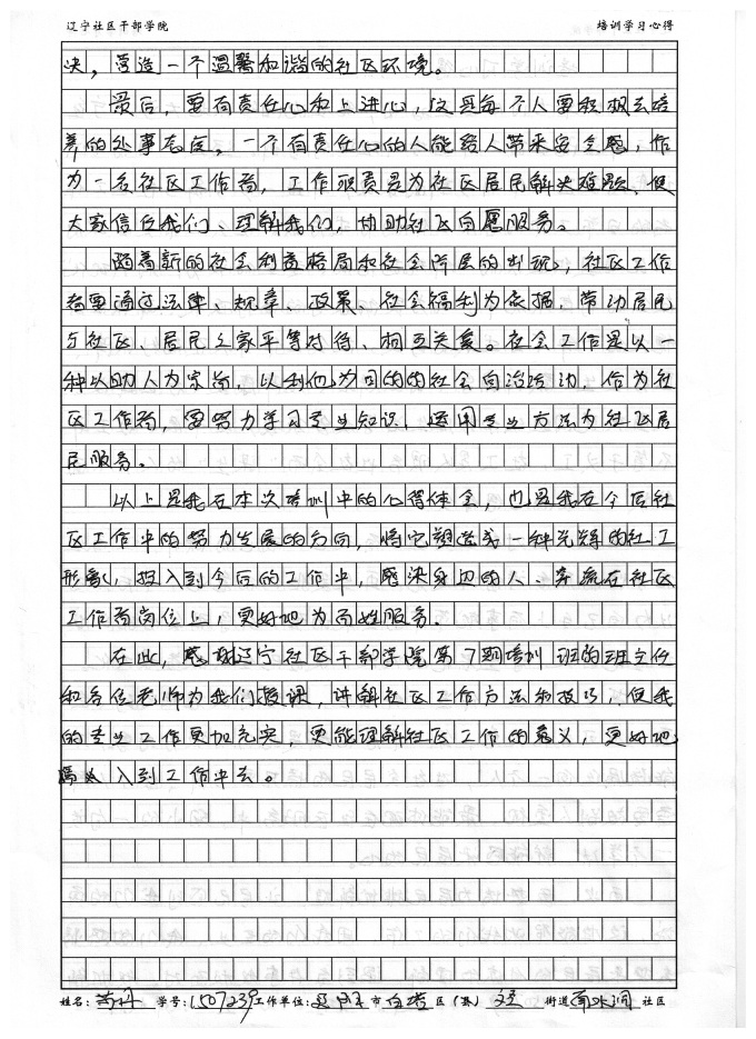 辽阳市白塔区文圣街道南水洞社区苏丹培训学习心得