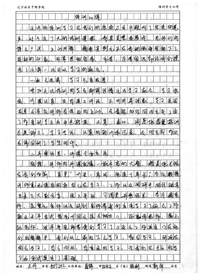 盘锦市双台子区胜利街道新华社区王丹培训学习心得