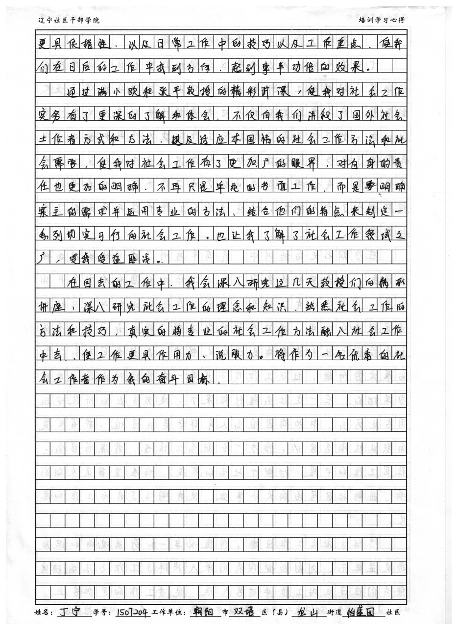 朝阳双塔区龙山街道怡盛园社区丁宁培训学习心得