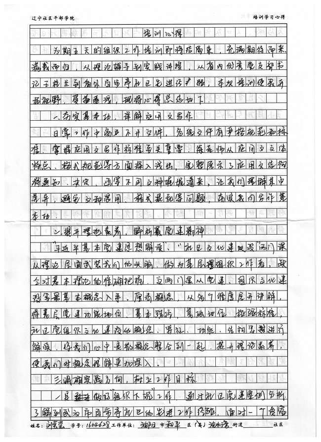 沈阳市和平区沈水湾街道刘莹莹培训学习心得