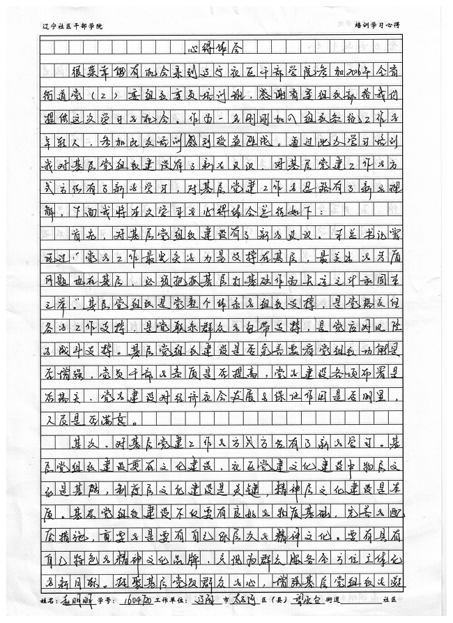 辽阳市太子河区望水台街道赵明明培训学习心得