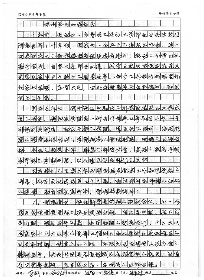 辽阳市宏伟区新村街道李研培训学习心得