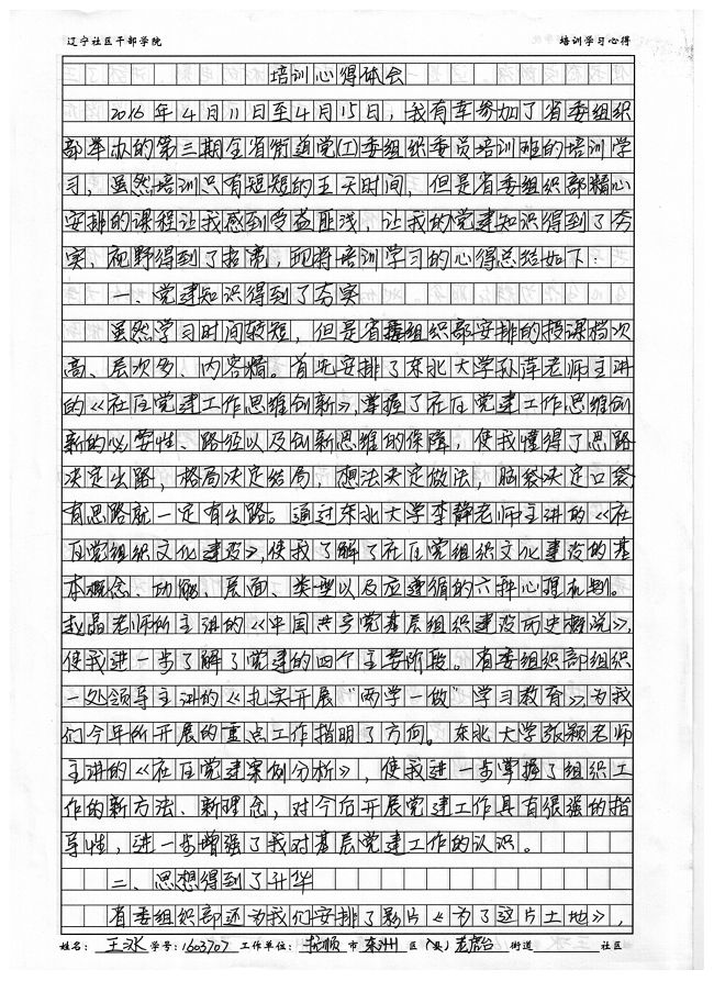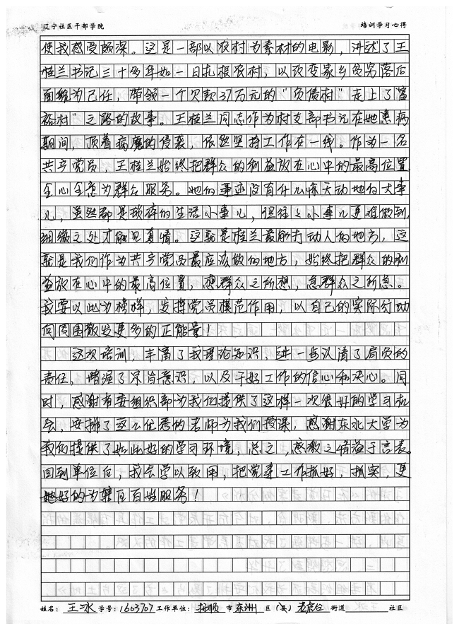 抚顺市东洲区老虎谷街道王冰培训学习心得