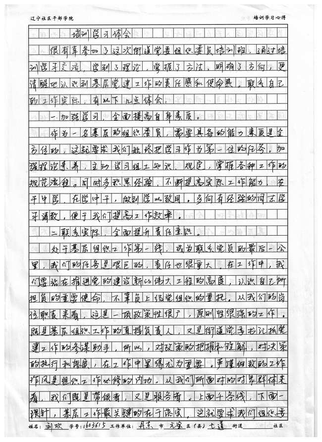 丹东市元宝区七道街道刘欣培训学习心得