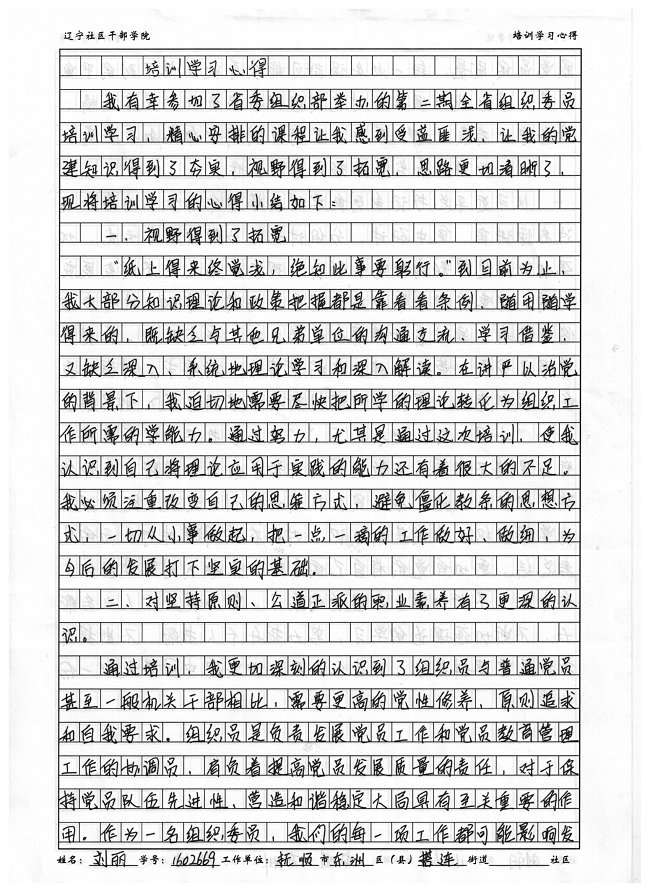 抚顺市东洲区搭连街道刘丽培训学习心得
