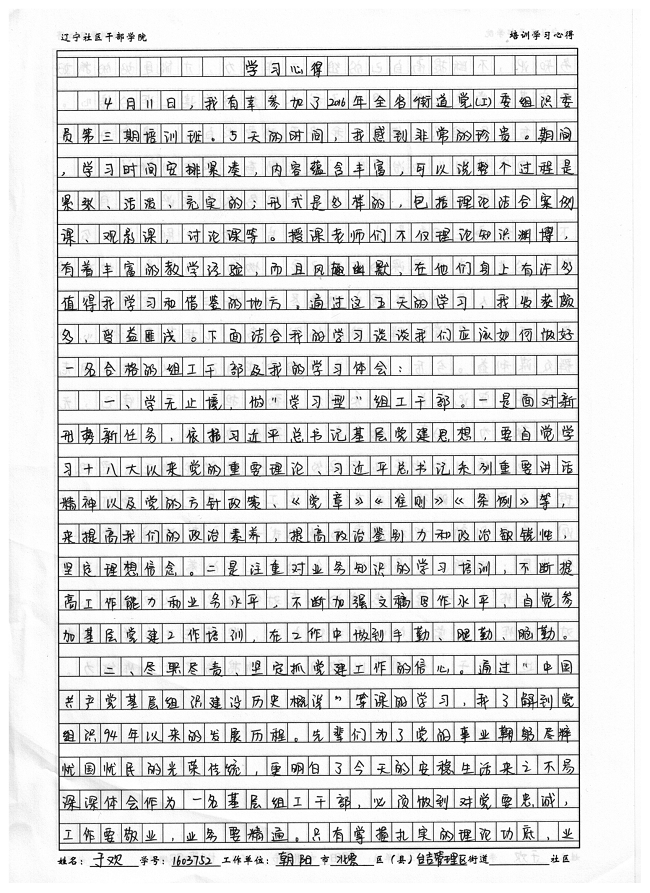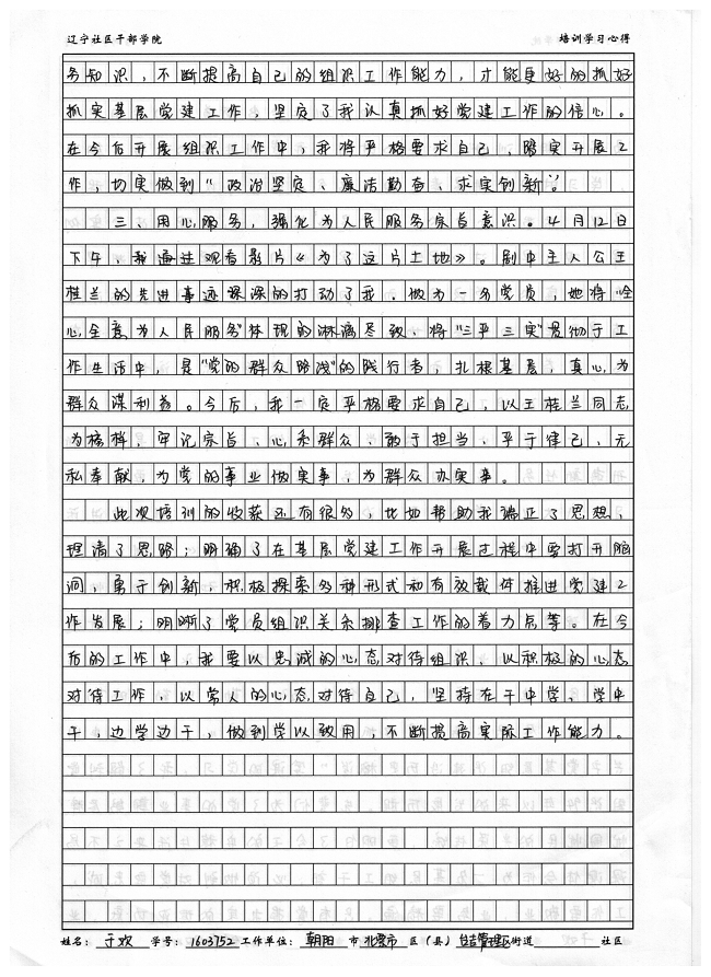 朝阳市北票市区台吉管理区街道于欢培训学习心得