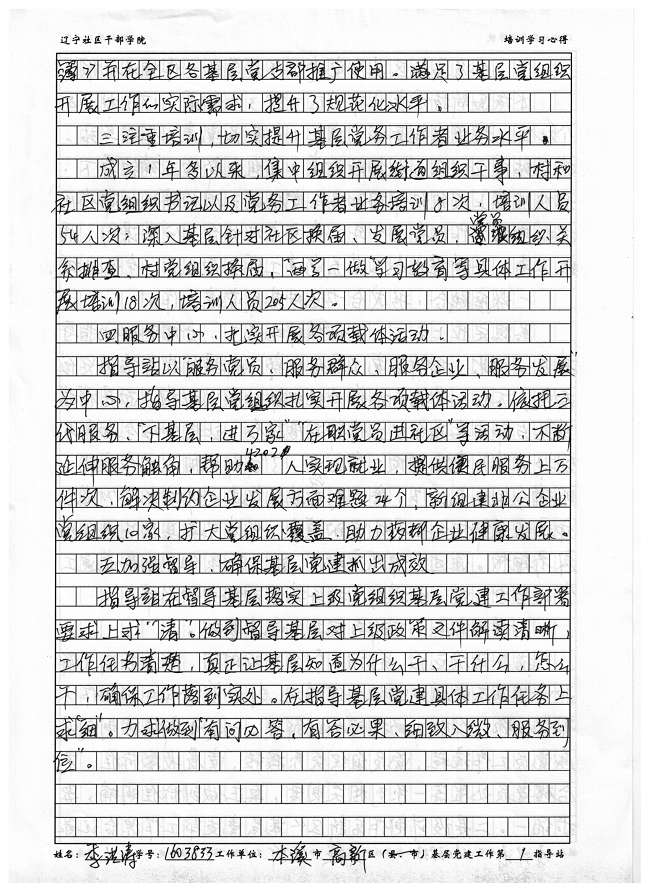 本溪市高新区基层党建工作指导站站长季洪涛培训心得