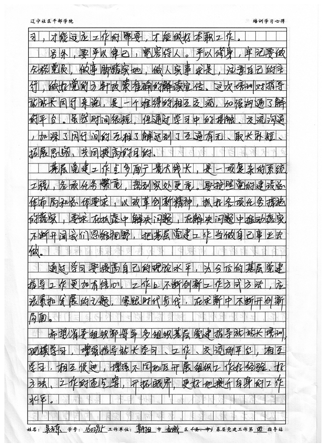 朝阳市龙城区基层党建工作第四指导站吴立东培训心得