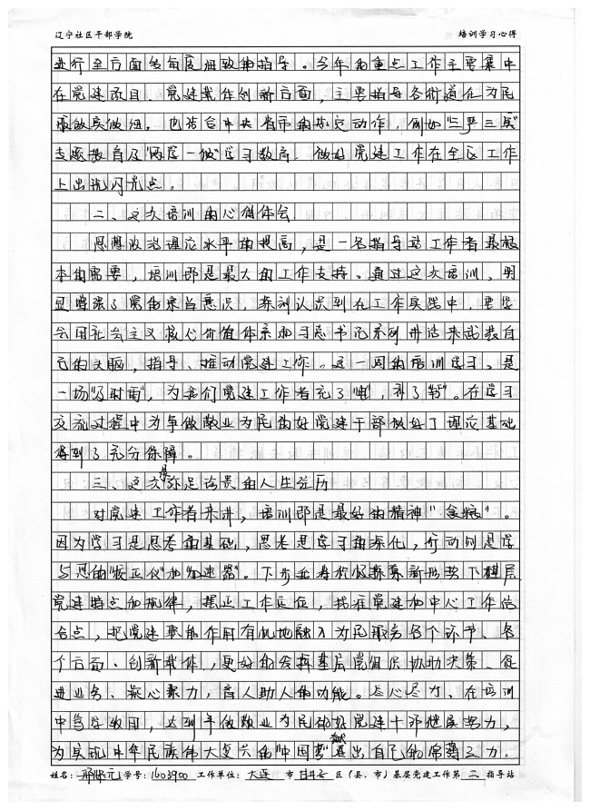 大连市甘井子区基层党建工作第二指导站工作人员邢继元培训心得