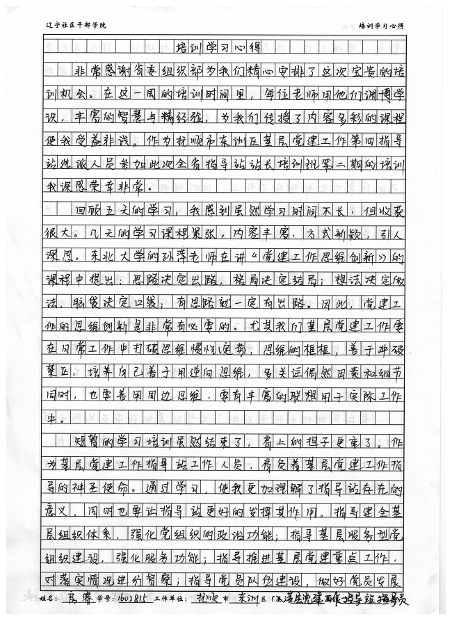 抚顺市东洲区基层党建工作第四指导站房睿培训心得