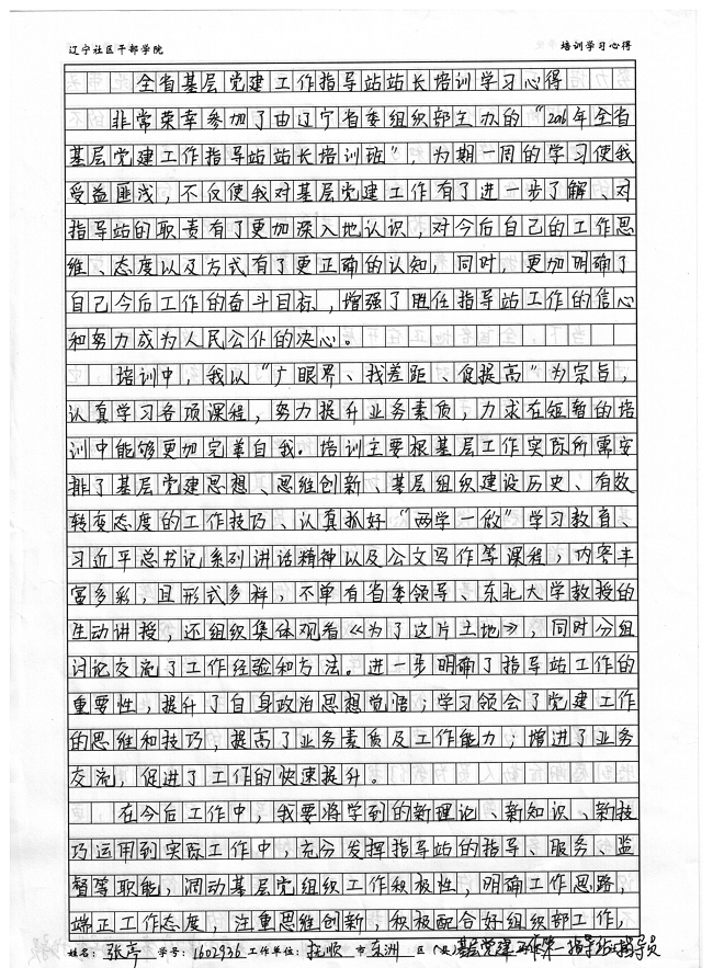 抚顺市东洲区基层党建工作第一指导站张亭培训心得