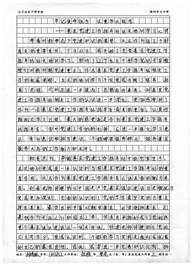 抚顺市望花区基层党建工作第三指导站指导员刘婧姝培训心得