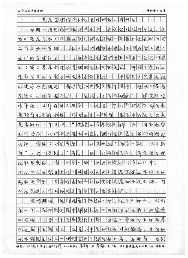 阜新市阜蒙县基层党建工作第四指导站副站长时悦培训心得