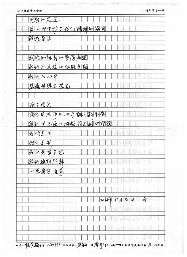 阜新市清河门区基层党建工作第三指导站杨笑梅学习心得