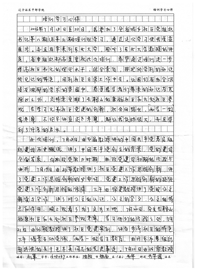沈阳市铁西区兴华街道兴华园社区副书记刘军学习心得