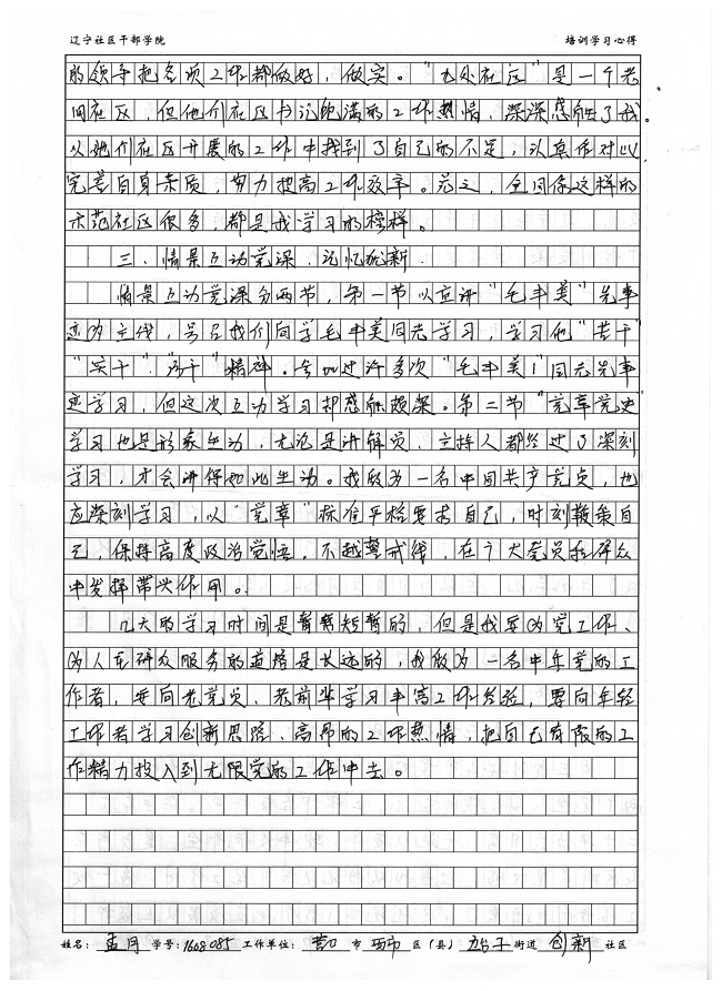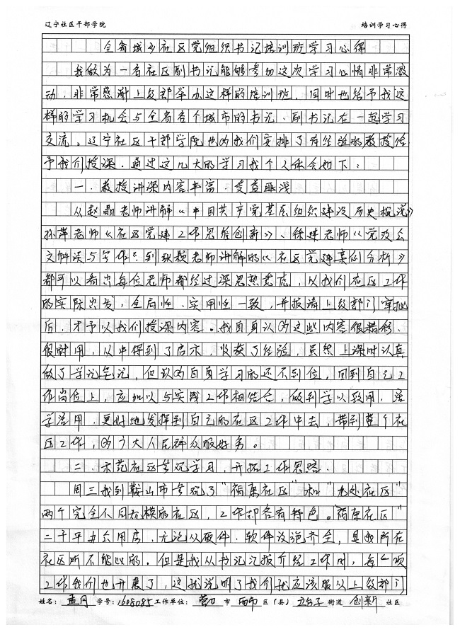 营口市西市区五台子街道创新社区副书记孟月学习心得