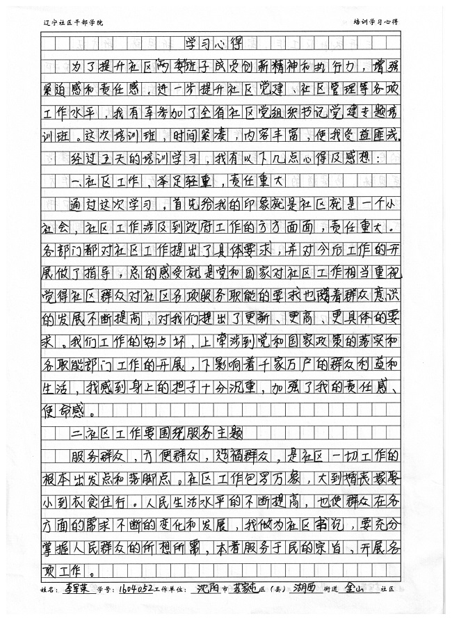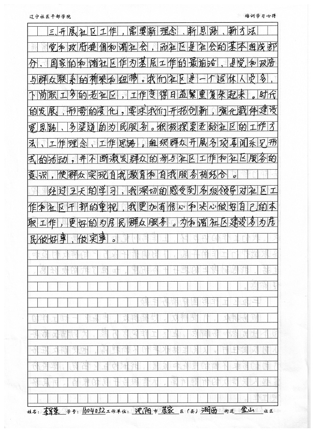 沈阳市苏家屯区湖西街道金山社区李军荣培训心得