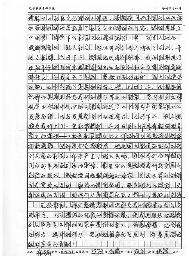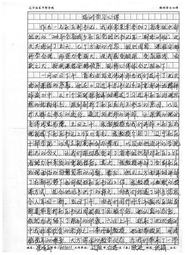 辽阳市白塔区跃进街道供销社区副书记崔晓丽培训学习心得