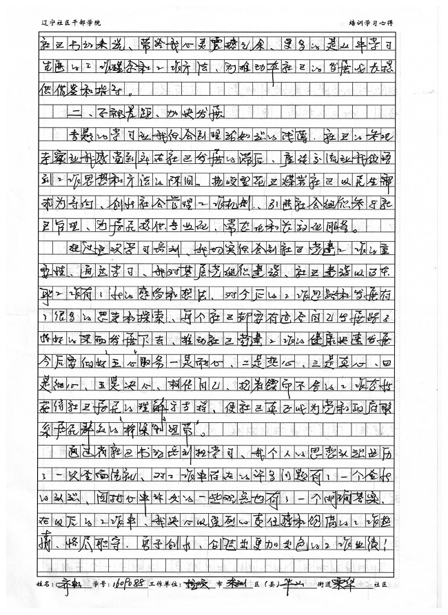 抚顺市东洲区平山街道栗华社区齐虹培训心得