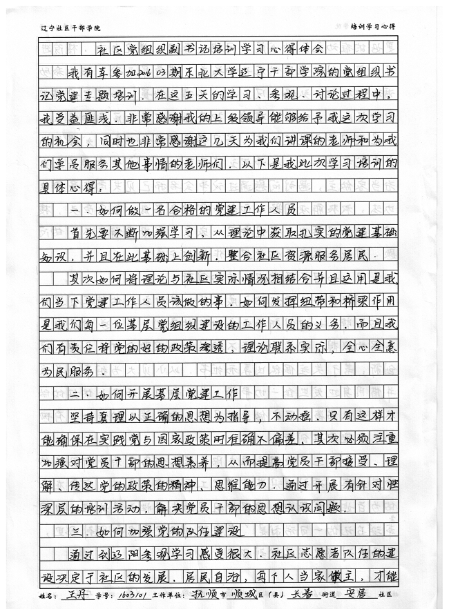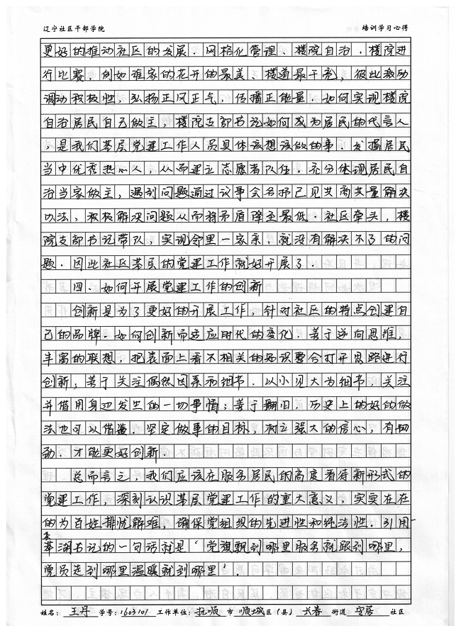 抚顺市顺城区长春街道安居社区王丹培训学习心得