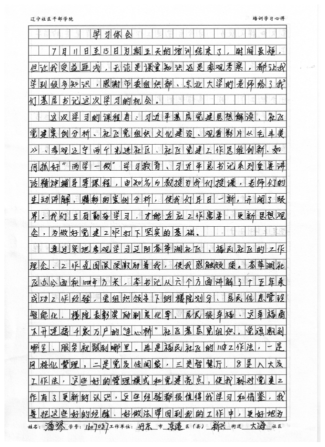 丹东市东港区新兴街道大海社区潘琴培训心得