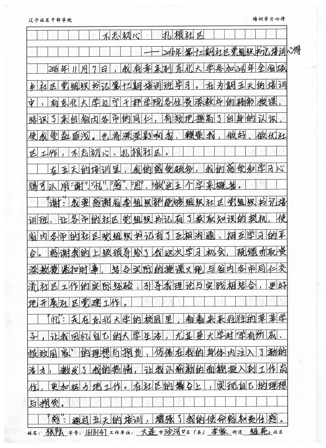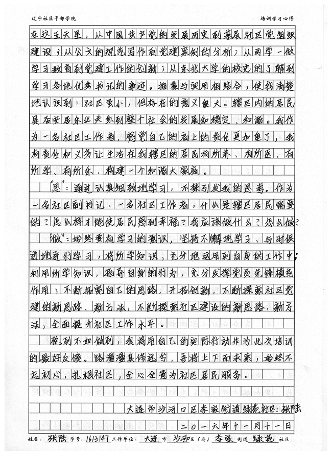 大连市沙河口区李家街道绿苑社区副书记张陆