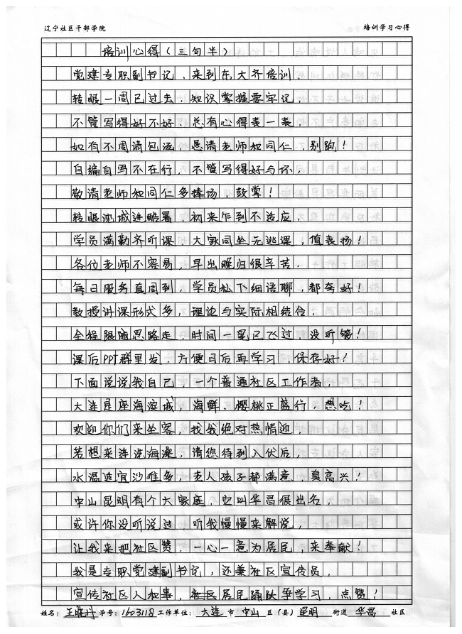 大连市中山区昆明街道华昌社区王晓丹培训学习心得
