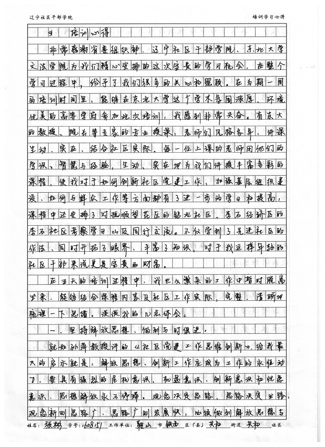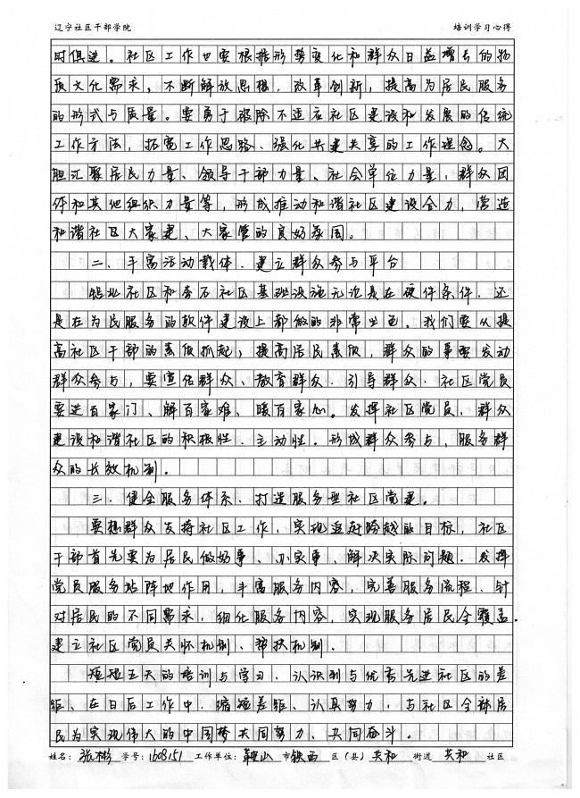 鞍山市铁西区共和街道共和社区副书记张彬学习心得