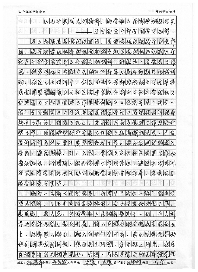 本溪市本溪县田师付镇大东社区杨春萍培训学习心得
