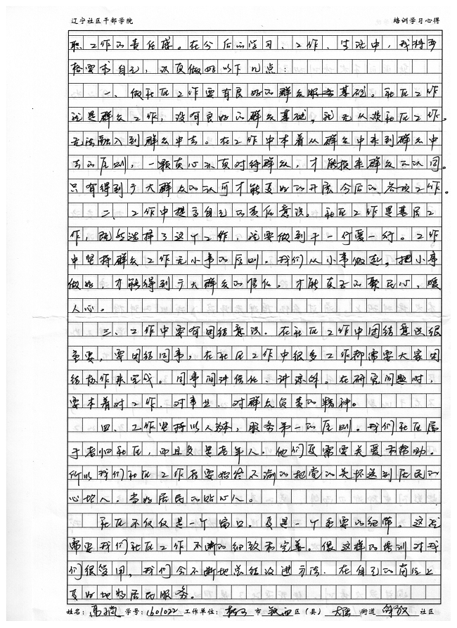 鞍山市铁西区大陆街道解放社区副书记高子岚培训学习心得