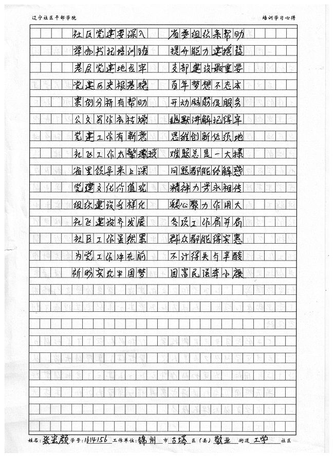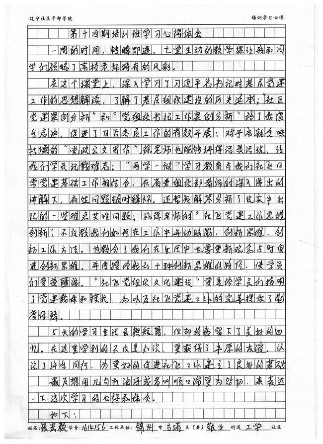 8锦州市古塔区敬业街道工学社区张宏颜培训学习心得扫描