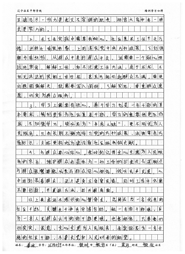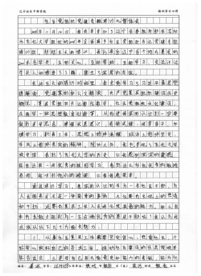 铁岭市银州区柴河街道银北社区姜冰培训学习心得扫描