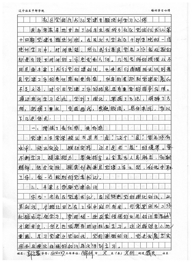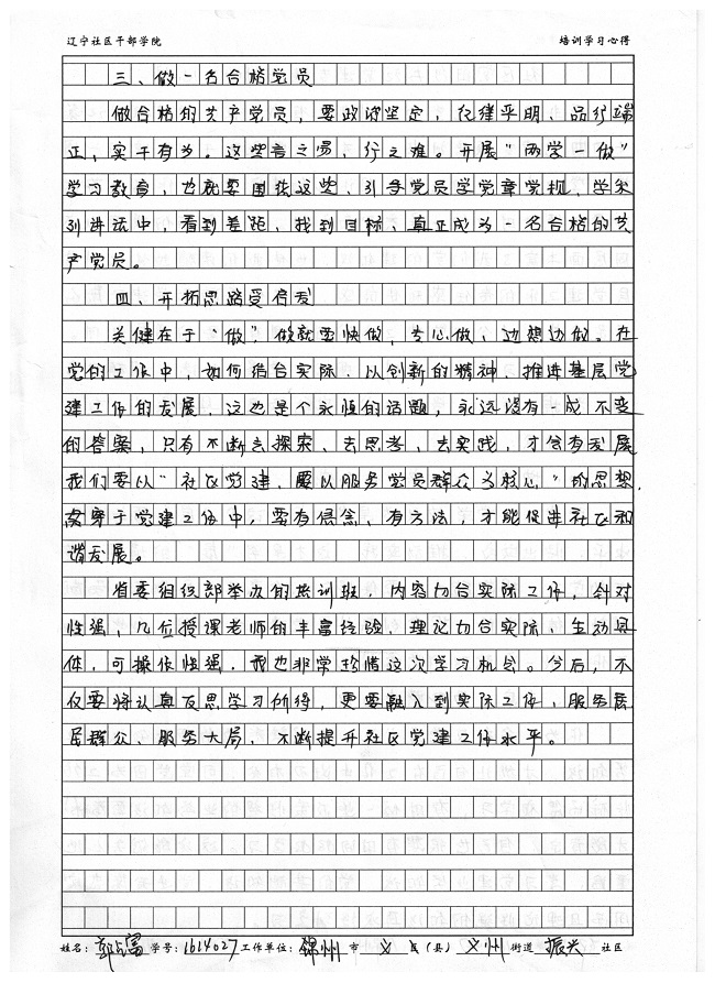 锦州市义县义州街道振兴社区郭占富培训学习心得扫描