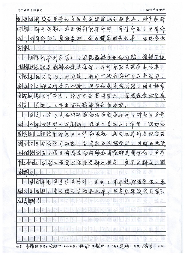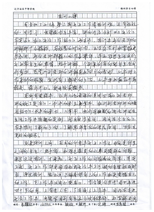 铁岭市银州区辽海街道长寿园社区朱耀红培训学习心得