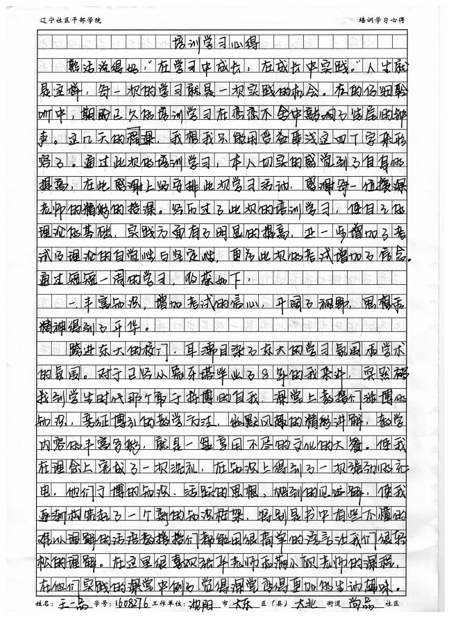 沈阳市大东区大杯街道尚品社区王一品培训学习心得
