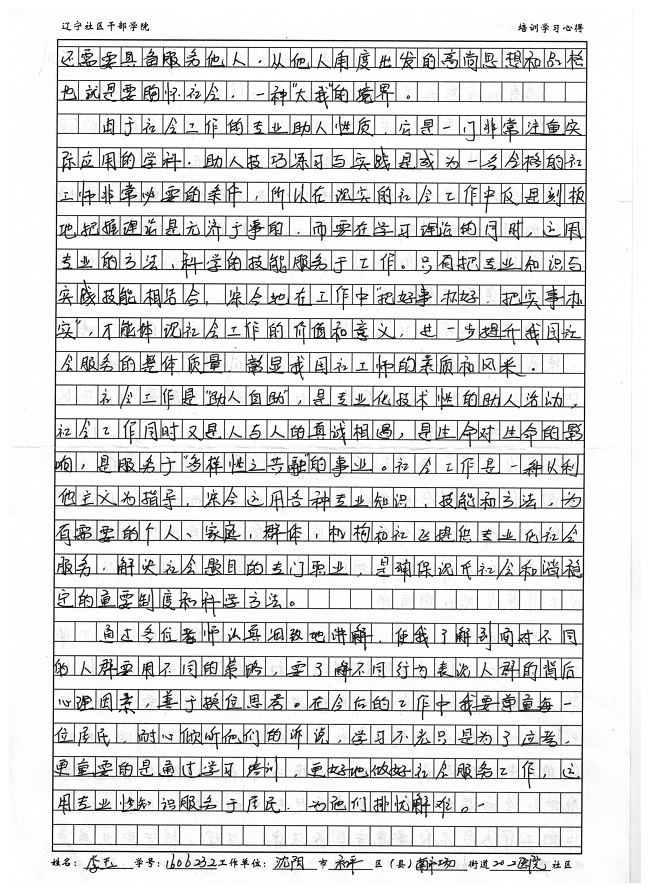 沈阳市和平区南市场街道202医院社区李玉培训学习心得