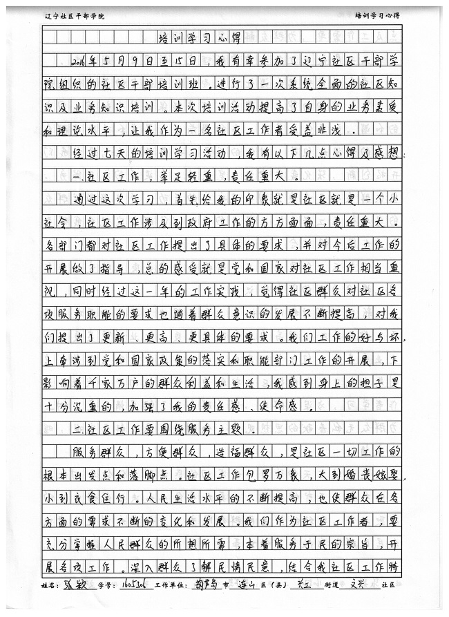 葫芦岛市连山区兴工街道文兴社区张颖培训心得