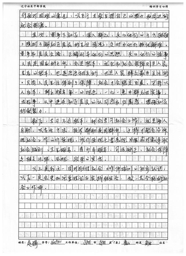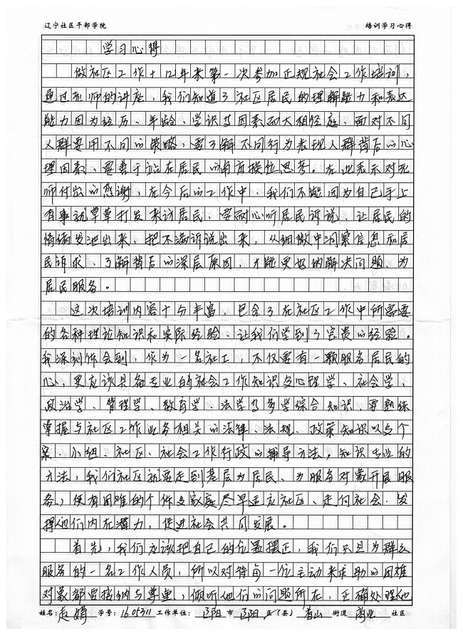 辽阳市辽阳县首山街道商业社区赵娟培训心得