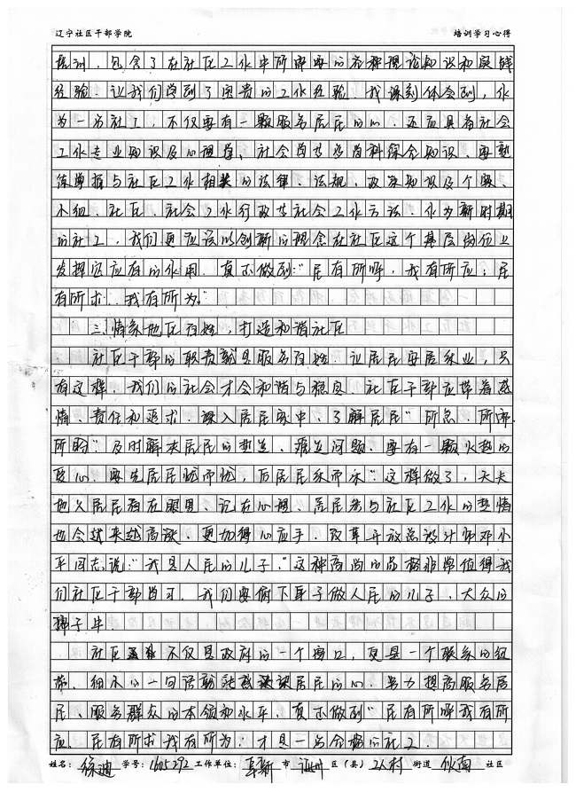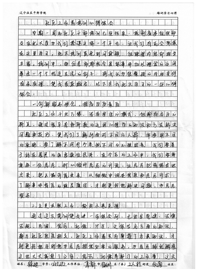 阜新市海州区工人村街道伙南社区徐迪培训心得